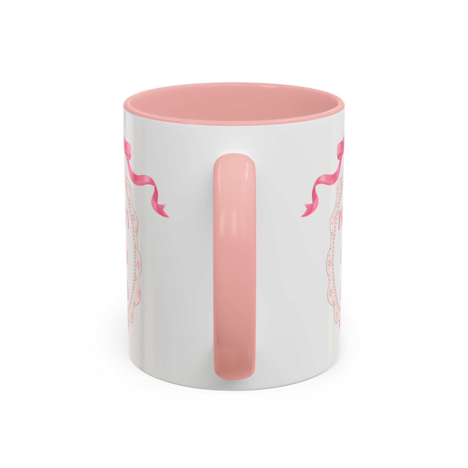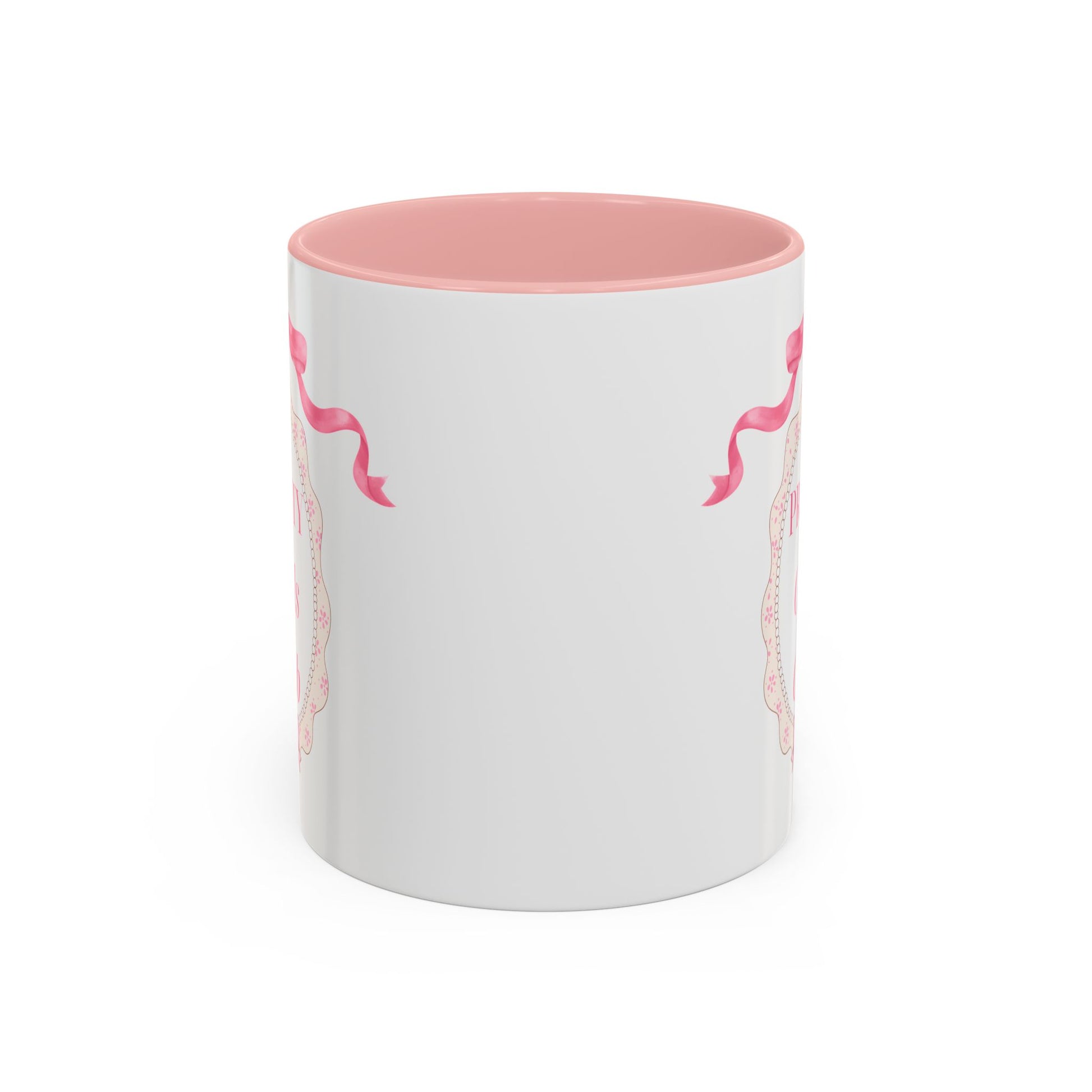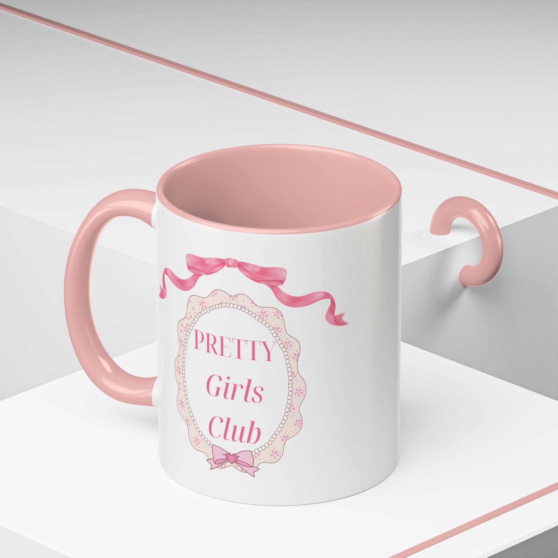 Pretty Girls Club Accent Coffee Mug — Pink Ribbon Decorative Ceramic Mug (11/15oz)